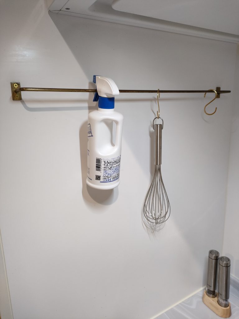 コンロ横の、調理器具をかけるバーも。