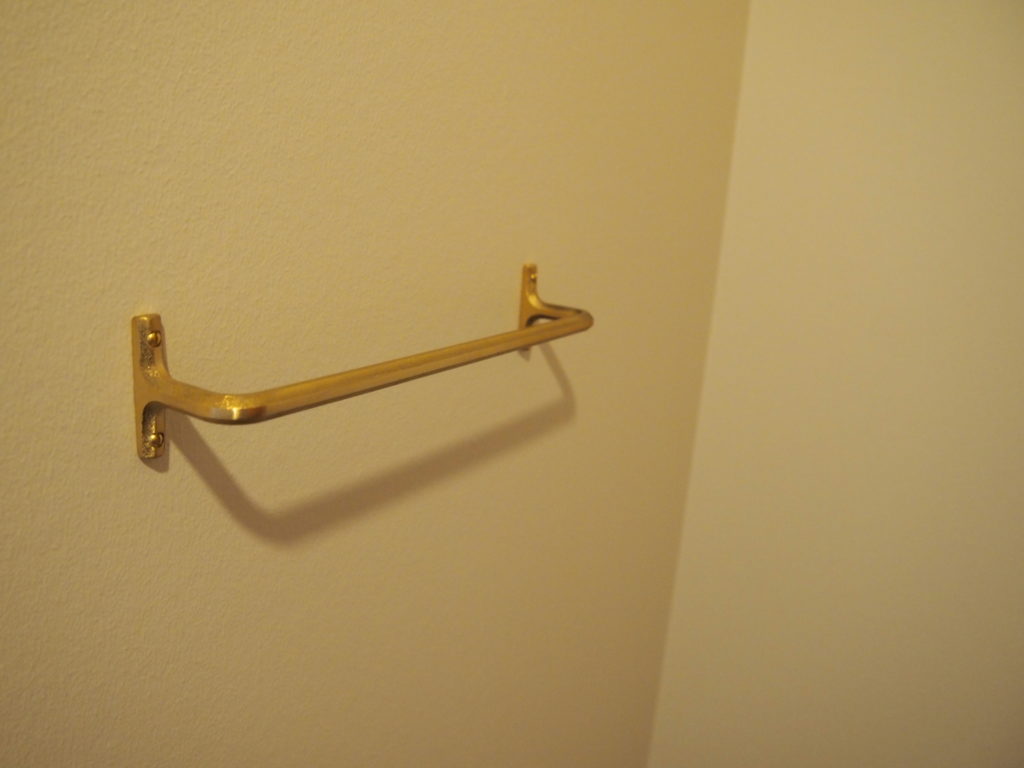 洗面所も真鍮。とはいえ、タオル掛けだけですが。