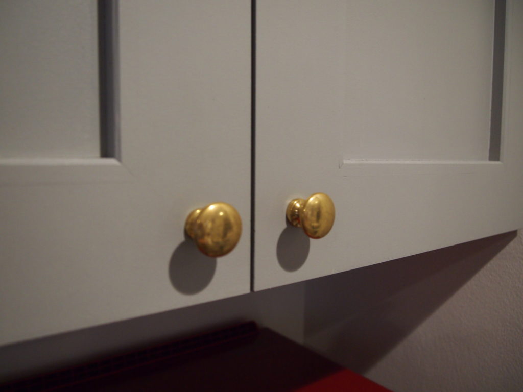 いくつかの造作家具でも、真鍮の取手やタオル掛けをつけています。