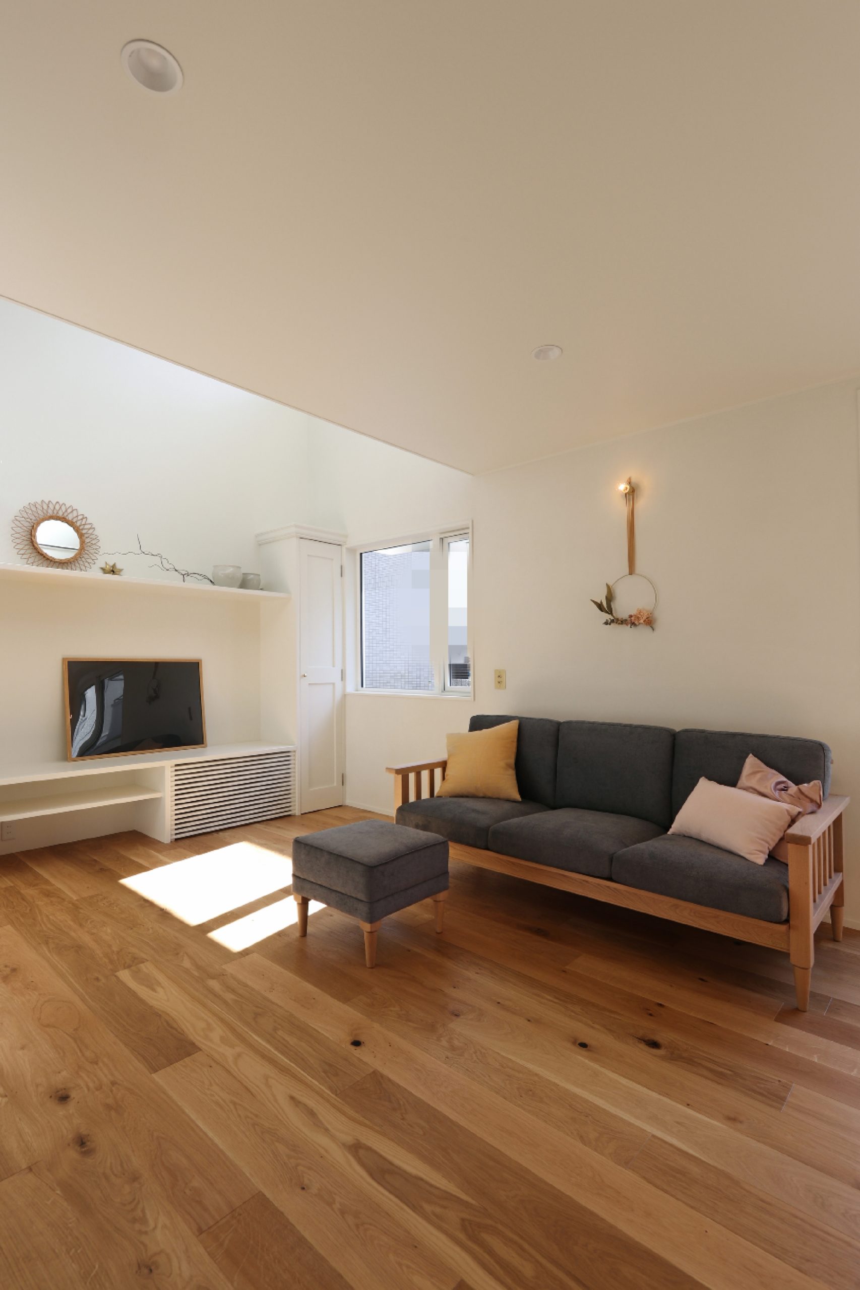 テレビ台やキッチンボードが作り付けなので、置く家具はそれくらい。今はベビーベッドを一時的に置いてますが。