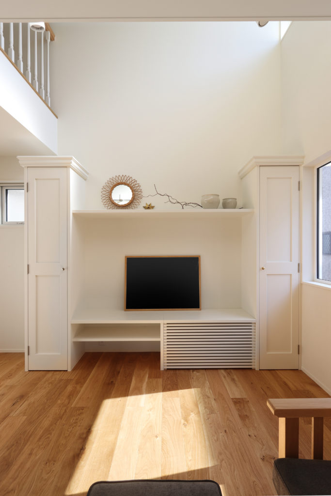 テレビ台の下と、LDKにいくつか床下からの空気の出口がついていて、直接だけでなく、床下から暖かい空気を回すことで、家全体に効果があるようです。