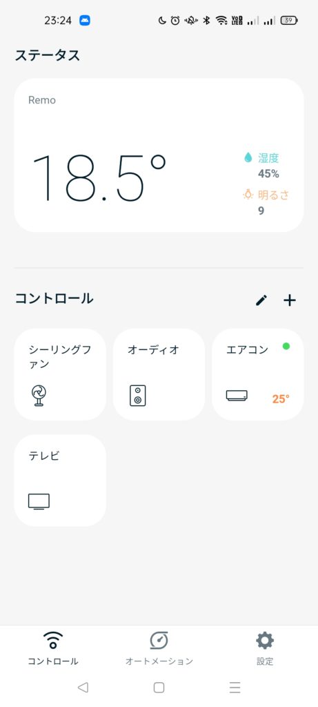 ただ、うちの場合は幸運にも2階の家電はそもそもwifi接続→公式アプリで操作可能、のため、アプリは一括になりませんが、2階はそれでコントロールしています。