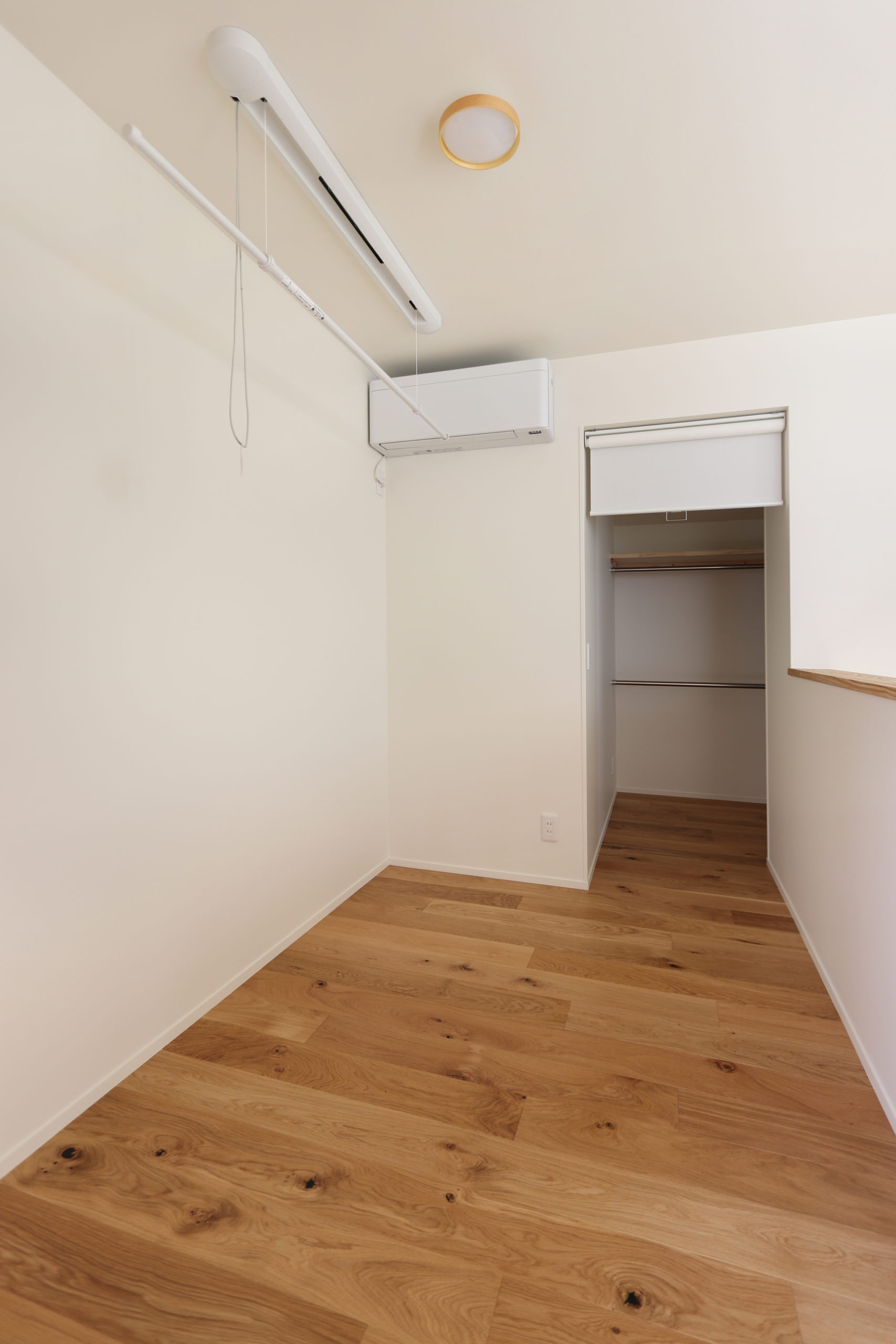 フリースペースとして、今は何も置いておらず、子どもの友達が遊びに来たときの遊び場の一つ、かつ屋内干しのためのスペースとなっています。
